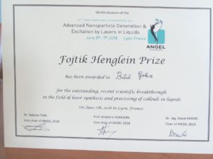 Conference LYON France „ 5.Angel conference: Advanced Nanoparticles Generation & Excitation by Laser in Liquids.” 3.6. to the 7.6.2018 Prof. Fojtik